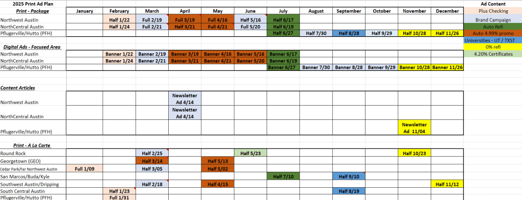 Community Impact delivered strong, cost-efficient reach and brand visibility across print, digital, email, and direct mail throughout 2025. The program leaned heavily into upper-funnel awareness, prioritizing impressions, readership, and frequency over direct response.